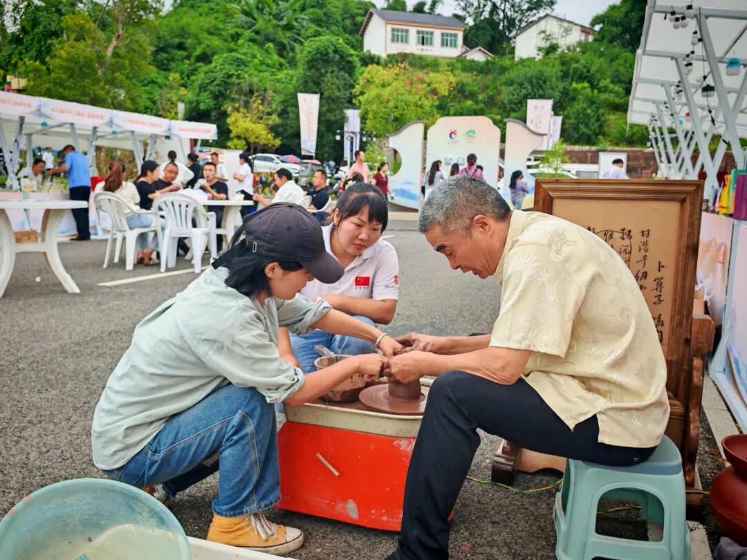 除核心汇演外,为期两天的“沉浸式文化体验矩阵”同样亮点纷呈。市集区内,“非遗守艺・民俗唱戏”活动每日14:00-19:00开展非遗巡游与体验,川南片区非遗传承人与团队将现场展示传统技艺;“匠心非遗・荣州有礼”文创市集打造三大特色区域,游客可在DIY工坊制作陶艺、木工纪念品,或参与非遗手作课程,带走专属家乡印记。“今朝好物・热闹赶场”展销与“舌尖美味・人间烟火”美食市集同步开放至21:00,本土农产品与老字号美食、非遗小吃相映成趣,重现川南“赶场”民俗活力。而每日的“民谣弦歌・老调新唱”表演,由自贡本土民谣乐队献艺,为市集区注入浓厚文艺氛围。