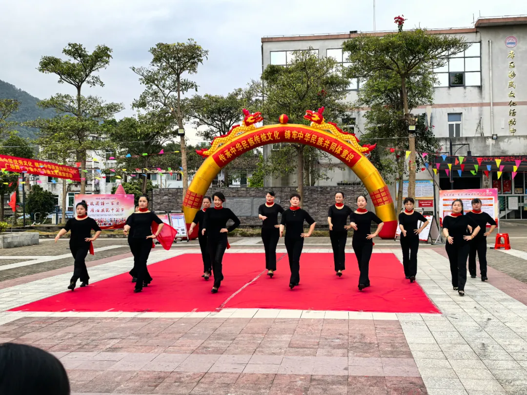 演出在十音八乐的锣鼓声中拉开帷幕。《祖国之恋》《中国舞起来》《中国美》等精彩的舞蹈节目轮番上台,结合扭秧歌、圆圈舞等特色元素,表演者们用优美的舞姿诠释了对祖国的热爱,展现各民族共同团结奋斗,共同繁荣发展,共创美好未来的生动画面。